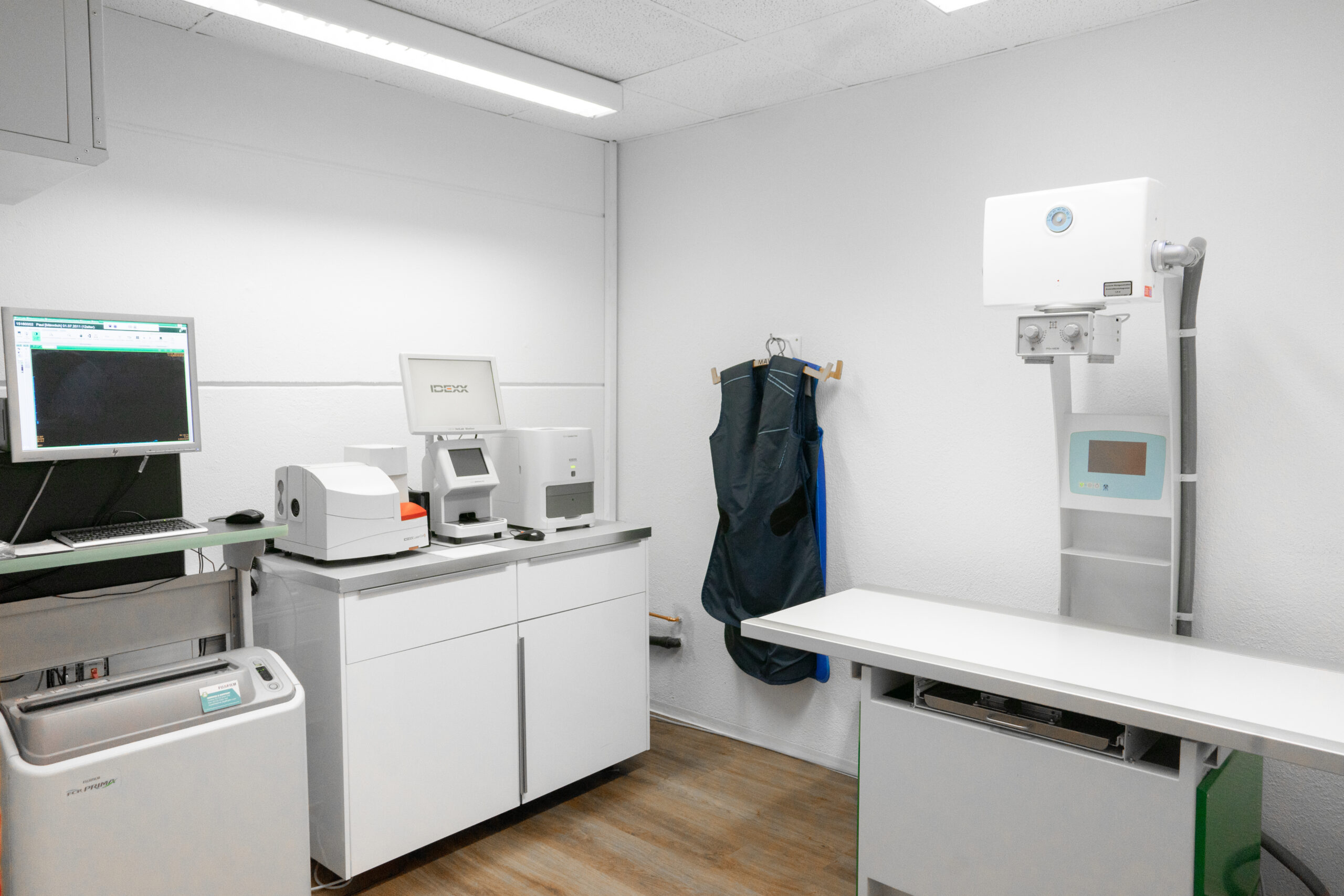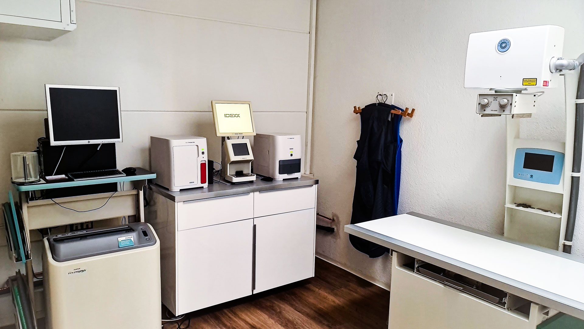 Die Praxis erstreckt sich über eine Fläche von 270 m² mit zwei Sprechzimmern, modern ausgestatteten Behandlungsräumen wie einem Labor- und Röntgenraum sowie speziellen Bereichen für Zahnbehandlungen und Operationen. Dadurch sind wir bestens für die täglichen Herausforderungen gerüstet. Unsere technische Ausstattung umfasst unter anderem digitales und dentales Röntgen, ein umfassend ausgestattetes Praxislabor, Endoskope und Ultraschallgeräte inkl. Echokardiografie.